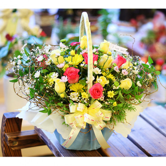 핑크장미바구니