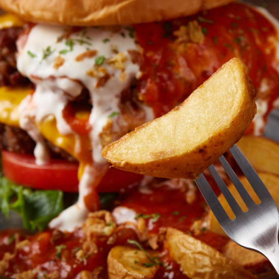전체보기[담짜몰] 100% Beef 핫 더블 스테이크 치즈 햄버거+웨지감자 (1인분/935g)